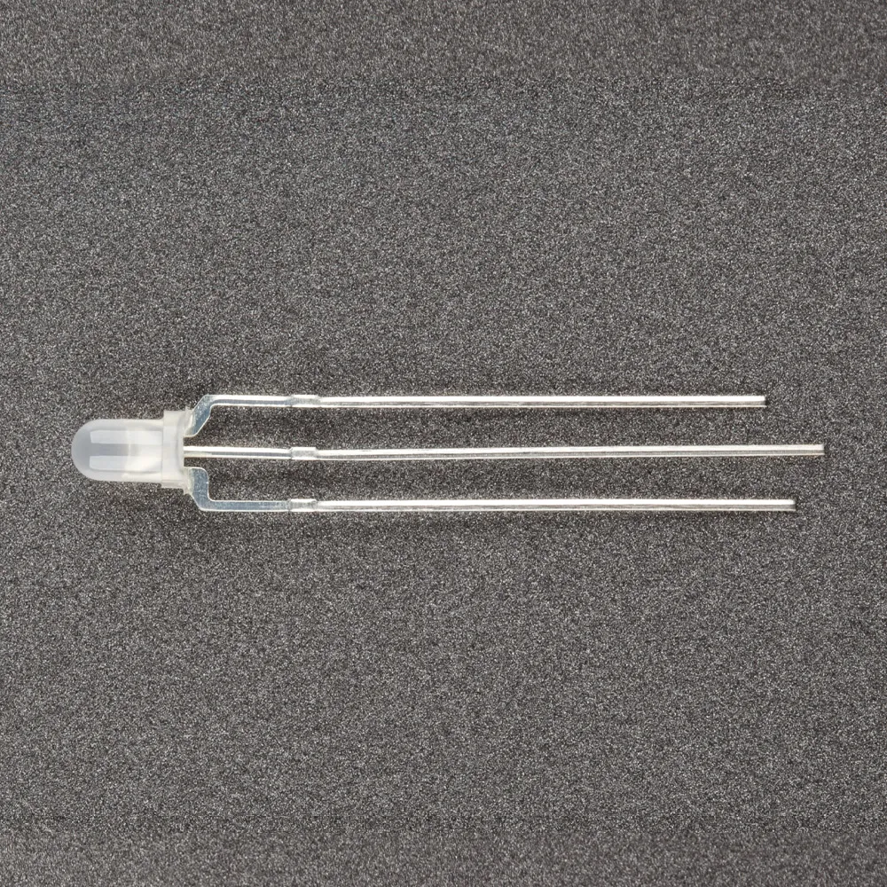 Поставка под заказ от 5000 шт. Выводной круглый светодиод, d=3 мм, матовая белая линза. Цвет свечения красный (625 нм), зеленый (565 нм). Угол излучения 40°. Сила света Iv=100-180 мкд (красный), Iv=70-120 мкд (зеленый) при If=20 мА. VF=2.0-2.5 В. Три вывода, общий анод.