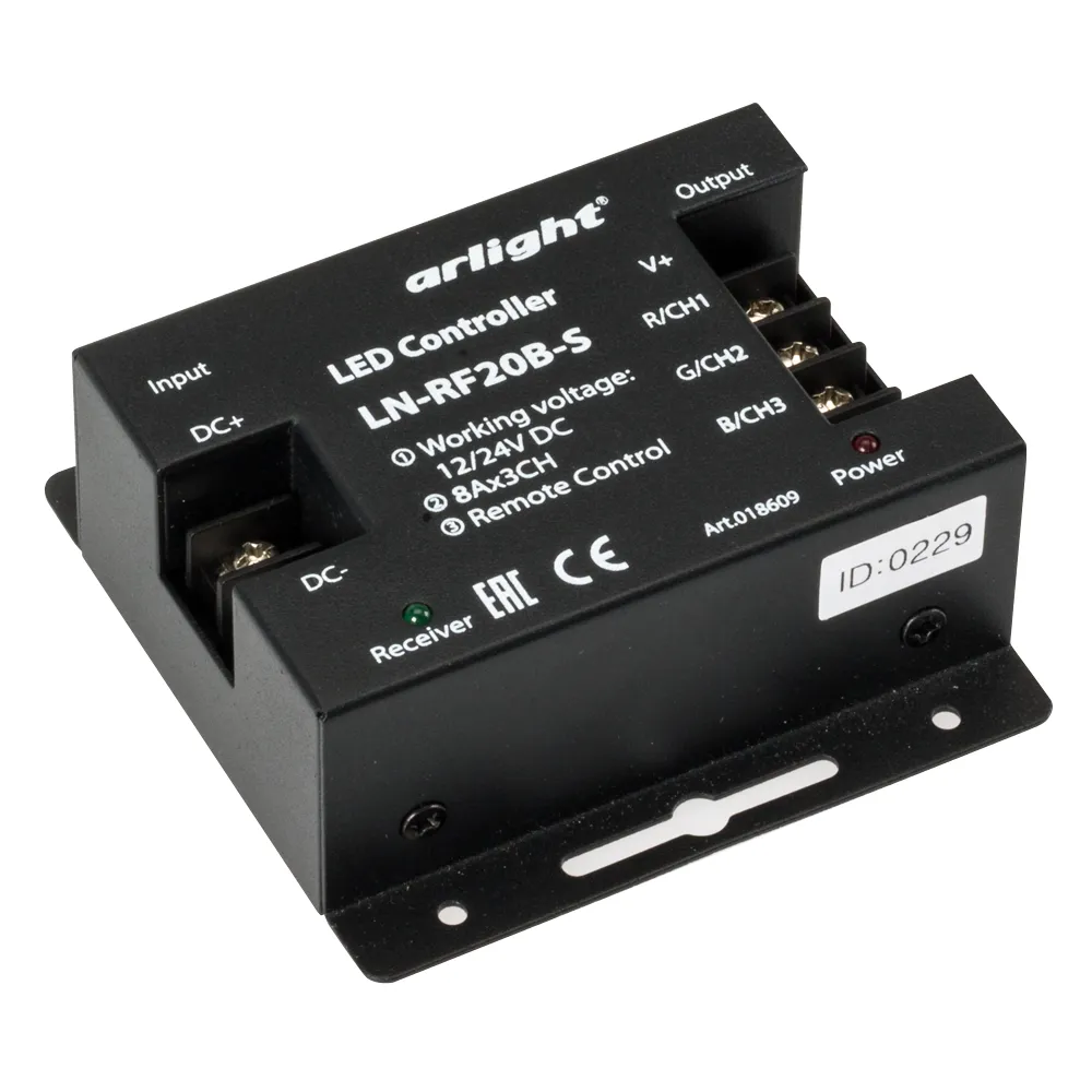 В магазине Мельковский Свет Вы можете купить "Контроллер LN-RF20B-S (12-24V, 288-576W, ПДУ 20кн) (Arlight, IP20 Металл, 1 год)"