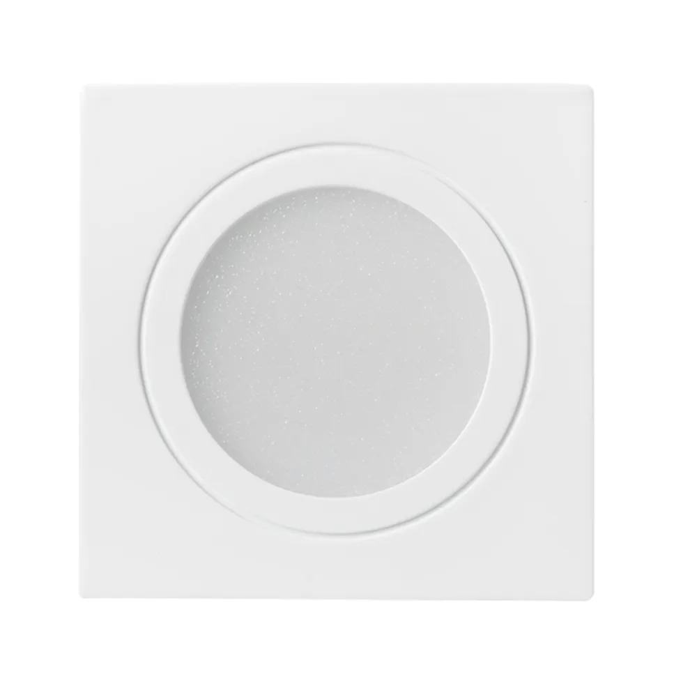 Врезной квадратный мебельный светильник 3Вт, корпус белый алюминий. Цвет ДНЕВНОЙ БЕЛЫЙ 4000K. Светодиод 1х3W. CRI>80, Св.поток 210-240лм, угол 110°. Питание 110-240VAC, 3Вт, 300mA 9-11V, драйвер в комплекте. Размеры 60x60x24 мм, врезное отверстие d45 мм.