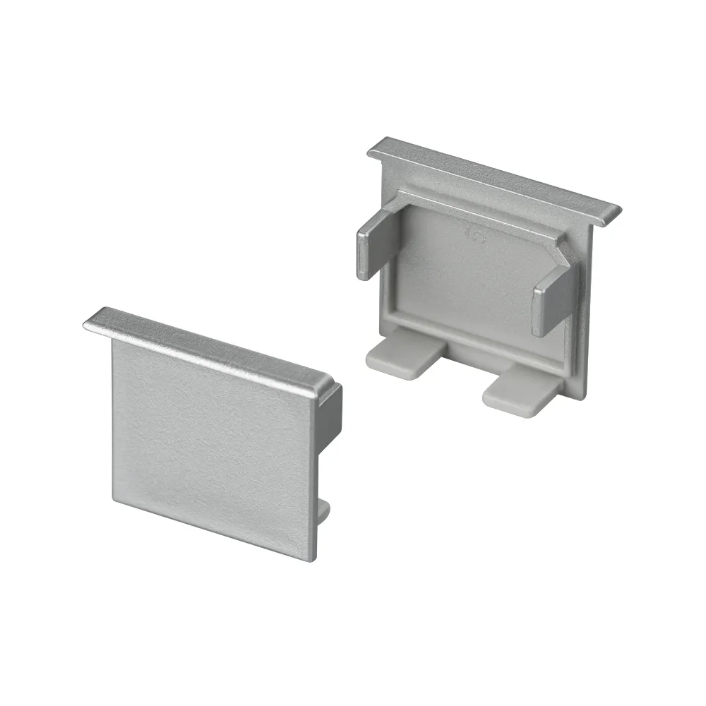 Заглушка светонепроницаемая для профиля PLS-LOCK-H25-FS глухая. Материал - металлизированный пластик с полным гашением света. Цвет - серебристый.