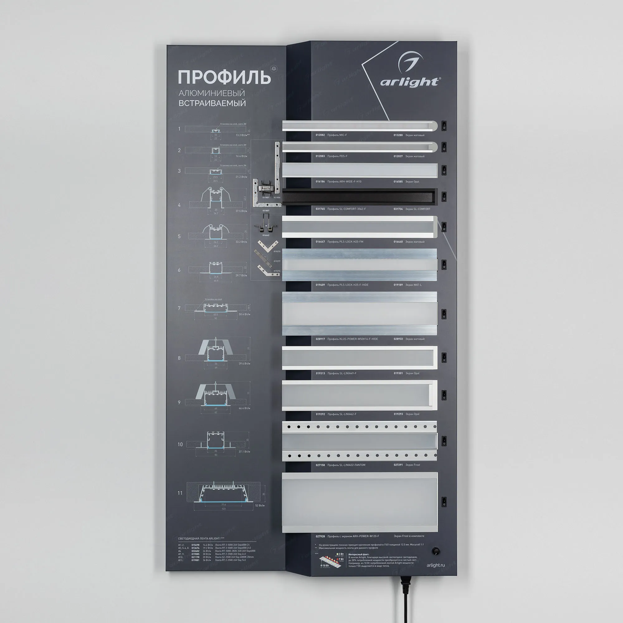 Наши специалисты знают все о продукции Arlight и с радостью помогут Вам выбрать комплектующие к товару "Стенд Профиль встраиваемый ARL-1100x600mm-02 (DB 3мм, пленка, лого) (Arlight, -)", или другие товары из раздела "Алюминиевые профили SL".