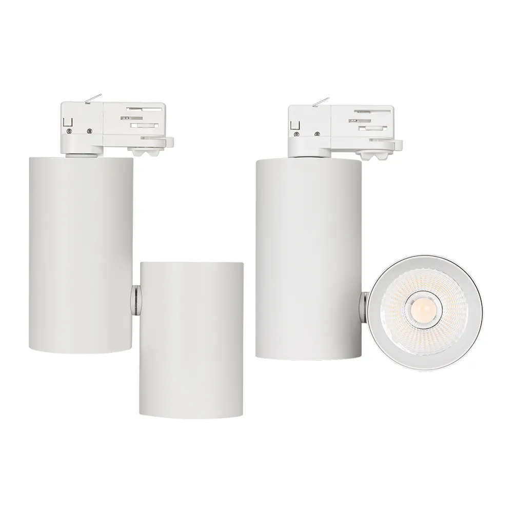 Корпус трековый с драйвером для светильника POLO-R85 (1 часть из 3). Для треков/шин 3 провода. Материал корпуса белый алюминий. Размер DxL1xL2xW Ø85x124x190x175мм, встроенный драйвер PRI:100-240VAC, SEC:DC 350mA 30-43V, 15Вт.