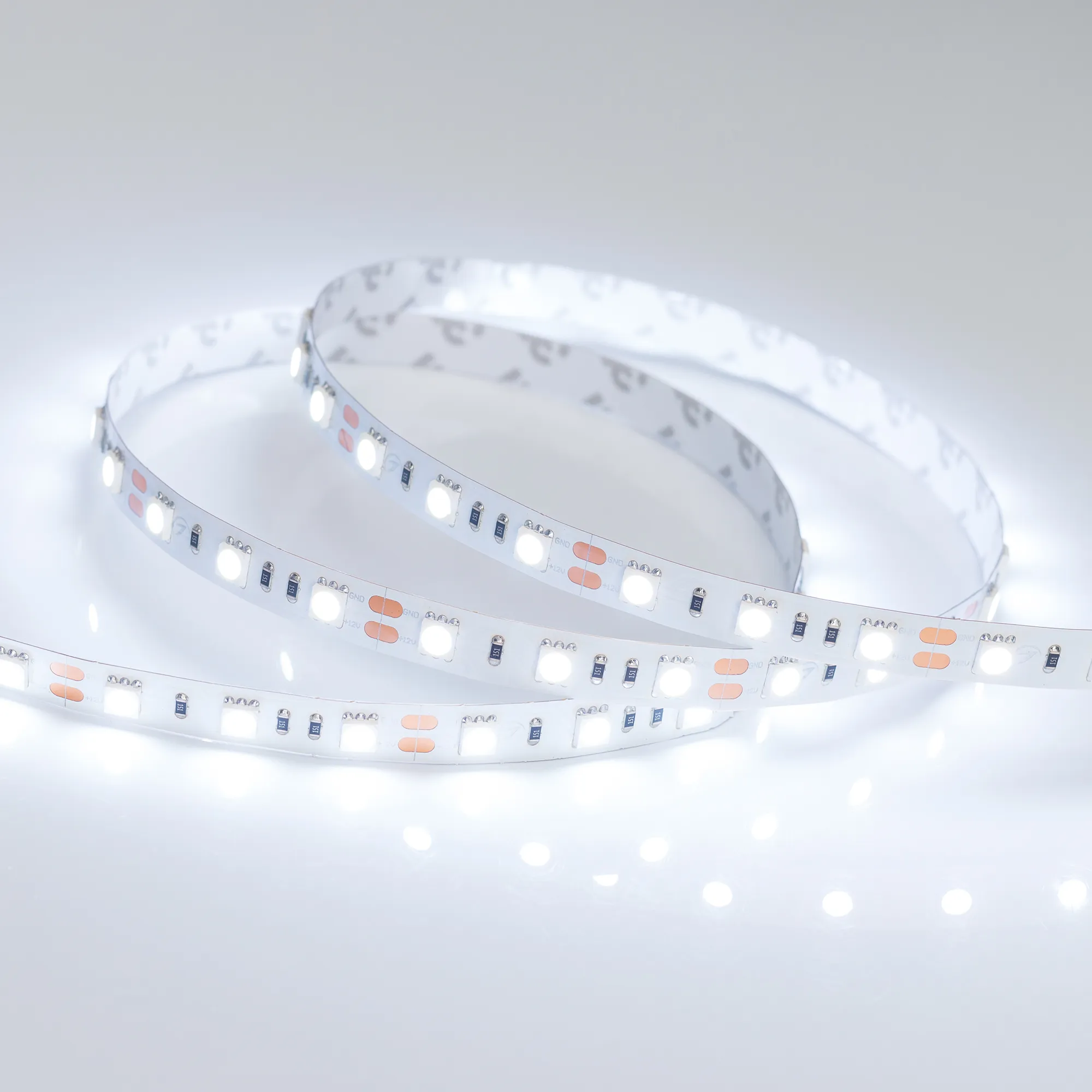 Гибкая лента LUX, светодиоды smd 5060, 60шт/м (300шт на 5м), белая плата 10мм, скотч 3М. Цвет ХОЛОДНЫЙ 7700-9600K. Питание 12V, мощность 14.4 Вт/м (72 Вт на 5м), угол 120°, цветопередача CRI>85. Размеры 5000х10x2.2мм. Мин.отрезок 50мм, 3шт светодиода. Пакет 5м. Цена за 1м.
