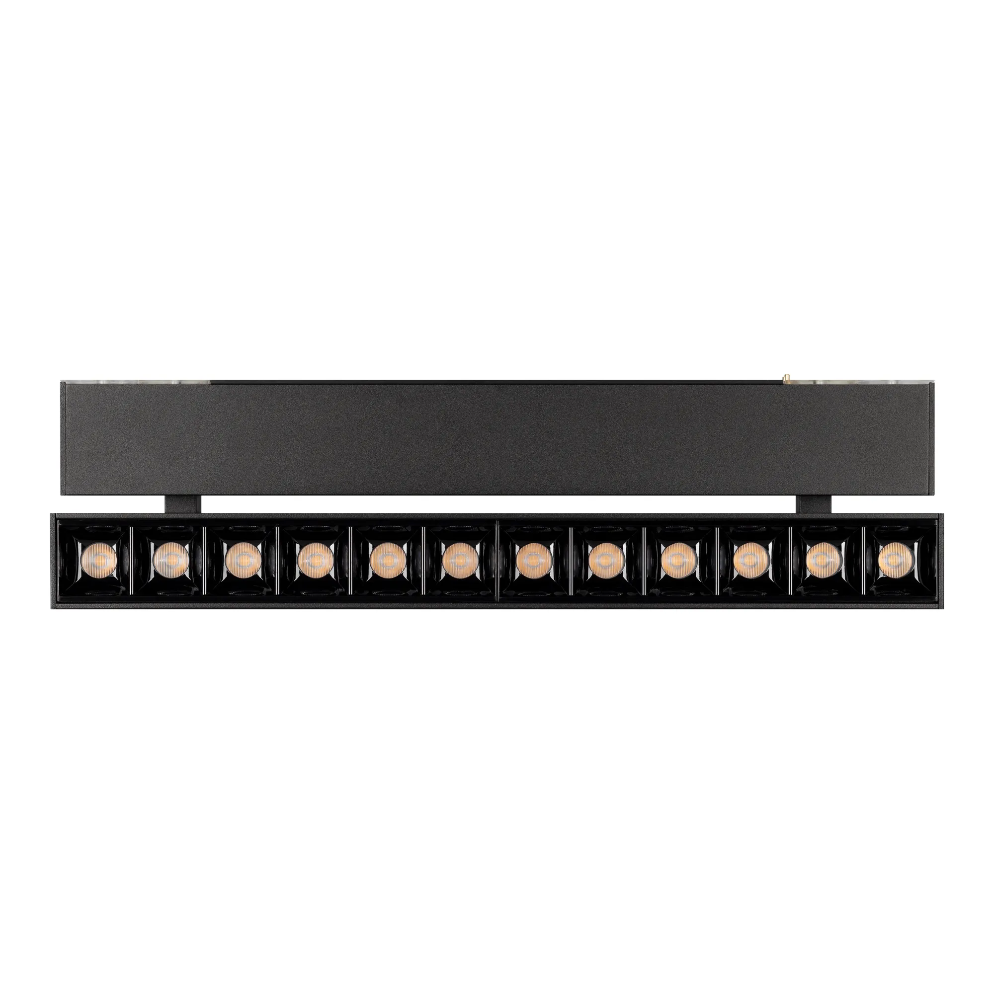 Светильник поворотный для магнитных треков шириной 45мм, 12Вт. Цвет свечения ТЕПЛЫЙ 3000K, световой поток 800лм, угол 15°, CRI>90. Корпус прямоугольный, металл, цвет черный, IP20. Размеры LxWxH 322x35x92.5мм. Входное напряжение DC24V, мощность 12Вт. Драйвер DС24V/AC230V поставляется отдельно. Диммируется только с 026407(1), 027633.