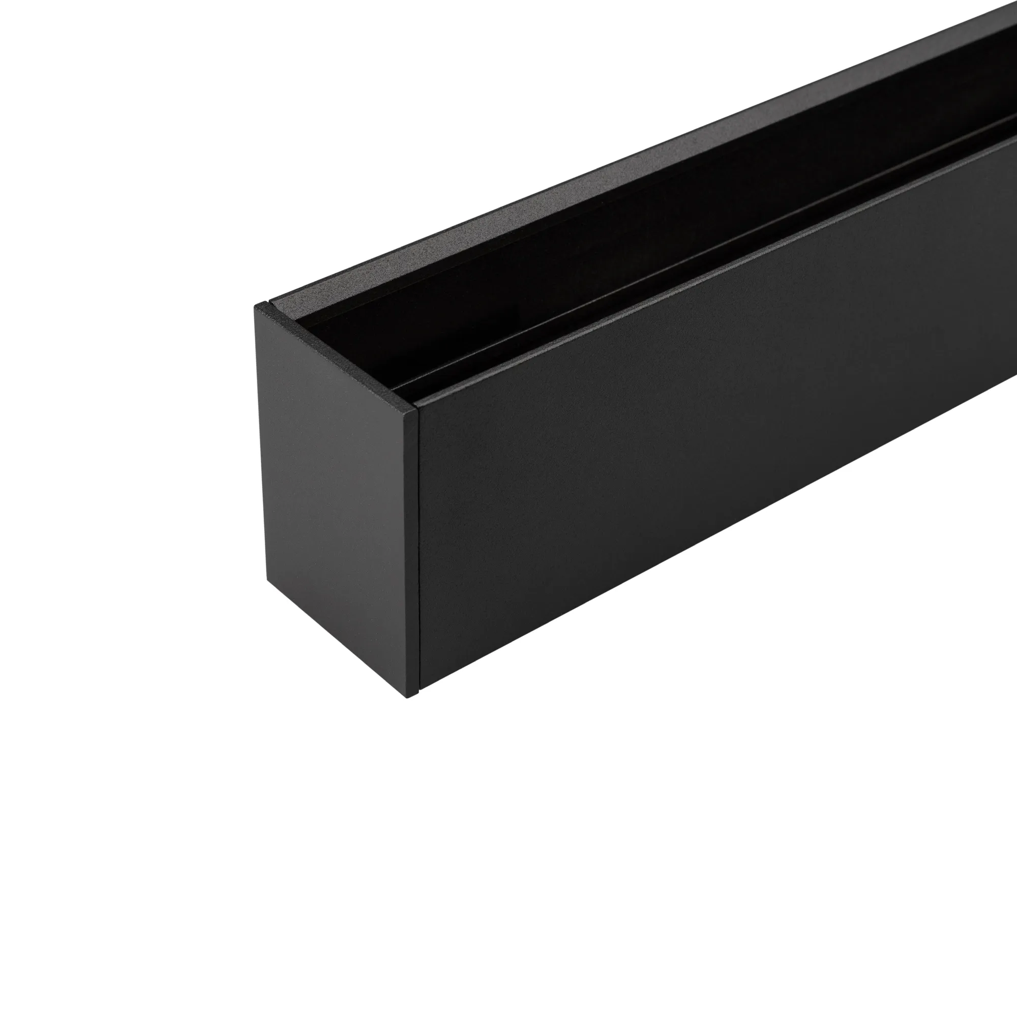 Подвесной, накладной, встраиваемый магнитный трек, длина 3000мм. DC24V. Материал алюминий, цвет черный. Две заглушки в комплекте. Размер ДxШxВ: 3000x45x63мм. Размер (с учетом заглушек) ДxШxВ: 3006x45x63мм. При встраиваемом монтаже установка в отверстие ДхШхВ 3007x46x63. Аксессуары для подвесного монтажа в комплект не входят.