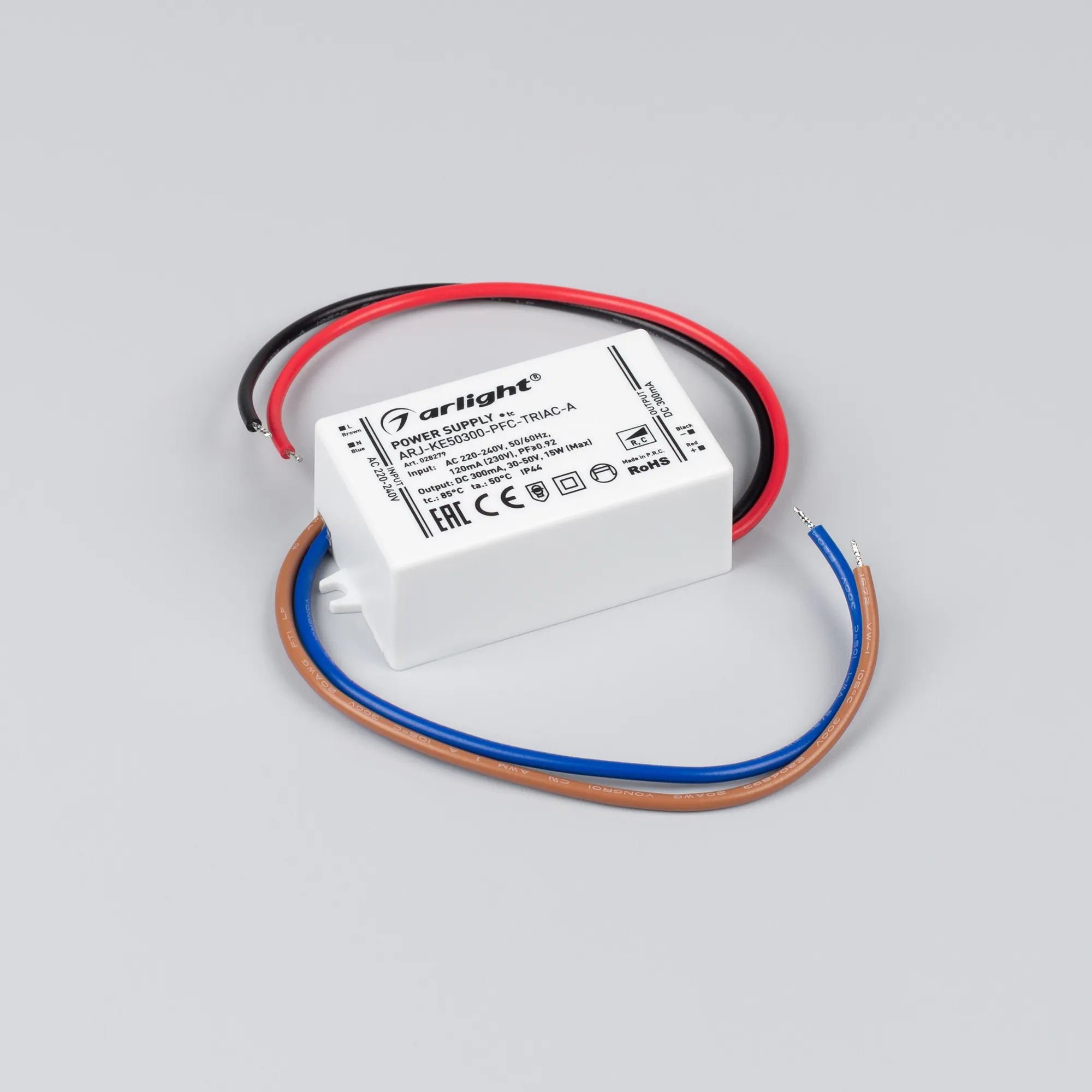 Блок питания ARJ-KE50300-PFC-TRIAC-A (15W, 300mA) (Arlight, IP44 Пластик, 5 лет)