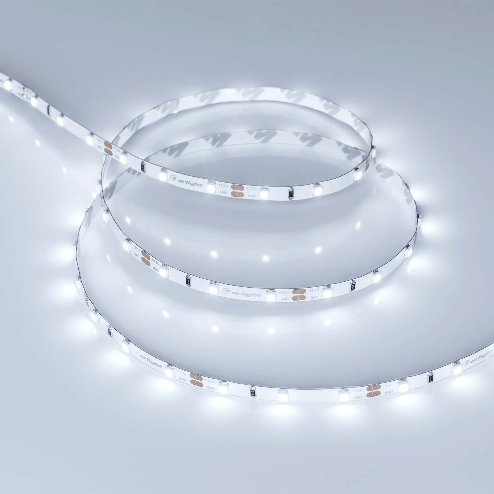 Светодиодная узкая лента RT серии A60. Светодиоды 2835, 60 шт/м, белая плата шириной 5 мм, скотч 3M. Цвет ХОЛОДНЫЙ 8000K, индекс цветопередачи CRI>85, угол 120°. Питание 12 В, мощность 4.8 Вт/м (24 Вт на 5 м). Размеры 5000х5х1.5 мм. Мин. отрезок 50 мм, 3 светодиода. Цена за 1 м.