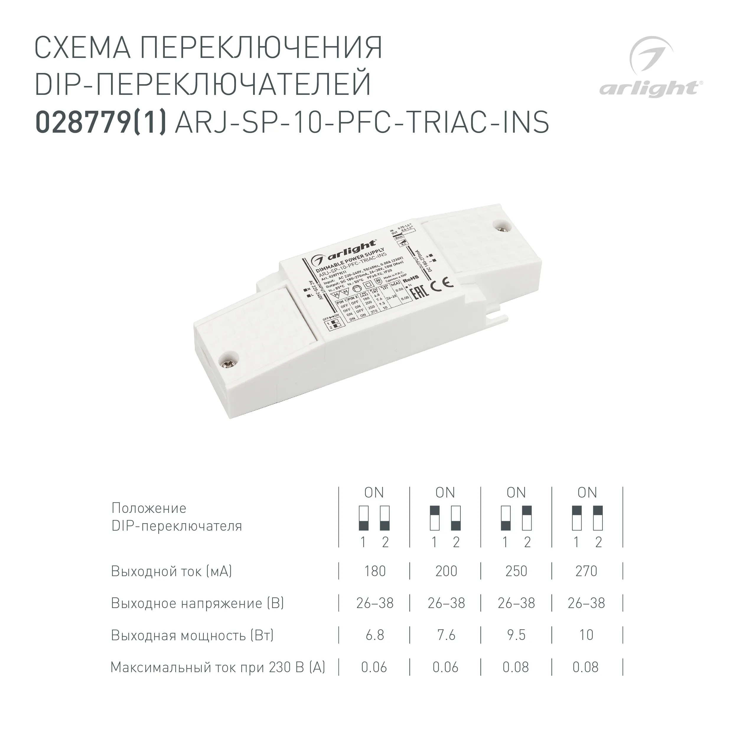 Блок питания ARJ-SP-10-PFC-TRIAC-INS (10W, 26-38V, 0.18-0.27A) (Arlight, IP20 Пластик, 5 лет)