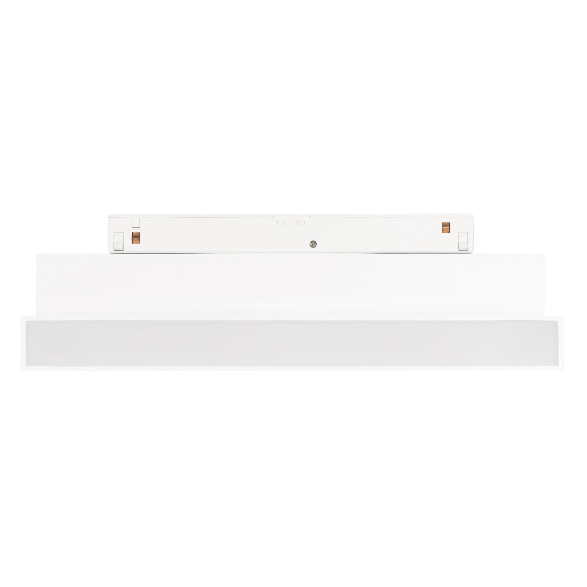 Светильник для магнитных треков MAG-ORIENT шириной 26 мм с управлением DALI. Мощность 12 Вт, св. поток 760 лм, 64 лм/Вт, дневной 4000 K, CRI>90, угол 80°, напряжение питания 48 В. Черный прямоугольный корпус из металл, экран поликарбонат, степень защиты IP20. Размер: длина 231 мм, ширина 23 мм, высота 107 мм. Монтаж на трек MAG-ORIENT. Пульсация <1%.