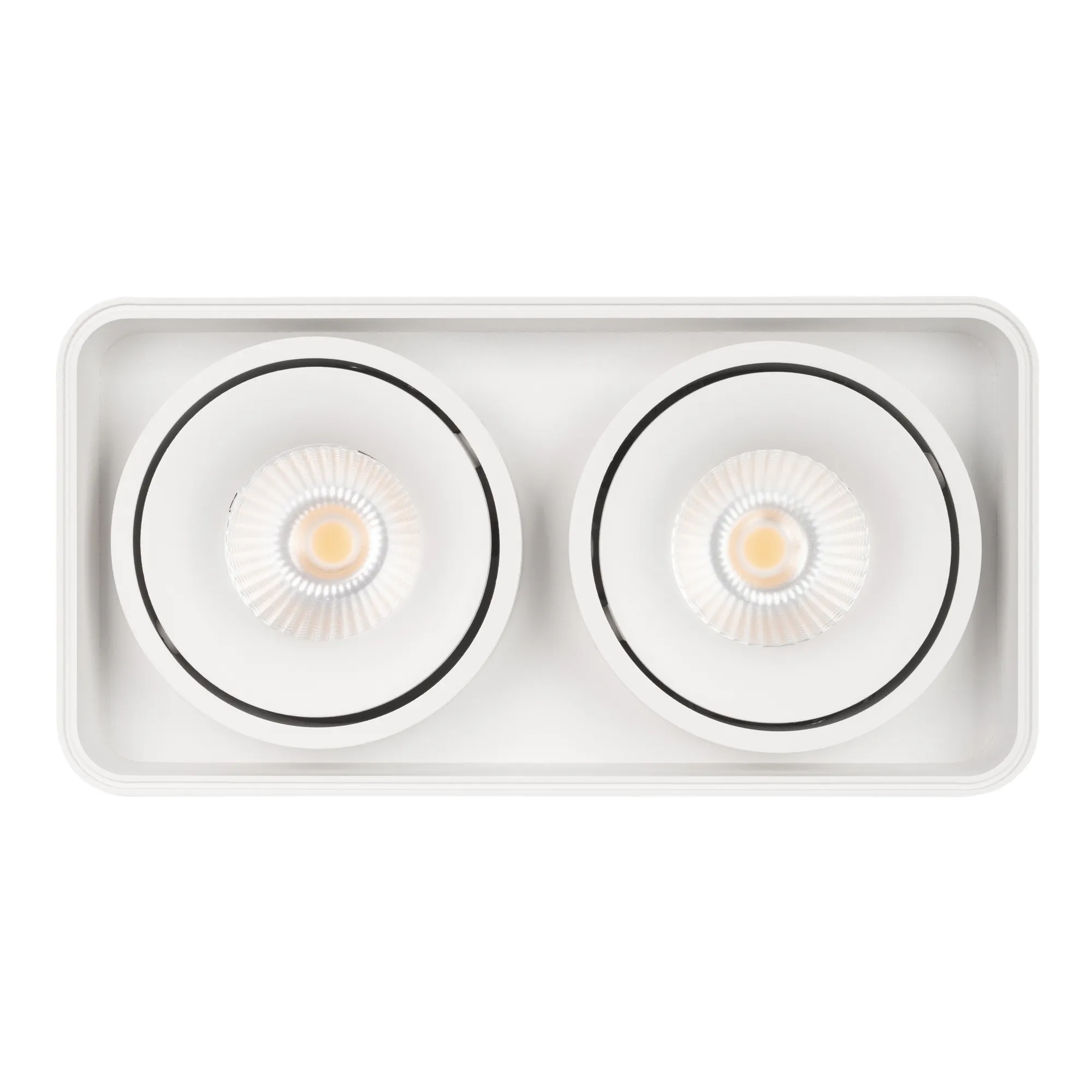 Поставка под заказ от 100 шт. Накладной интерьерный светильник. Мощность 16 Вт, св. поток 1490 лм, 98 лм/Вт, теплый 3000 K, CRI>90, угол 45°, регулируемое направление луча 30°, напряжение питания 230 В. Белый квадратный корпус из алюминия, степень защиты IP20. Размер: длина 195 мм, ширина 100 мм, высота 100 мм. Монтаж накладной. Драйвер 26-40 В, 400 мА, пульсация <5%.