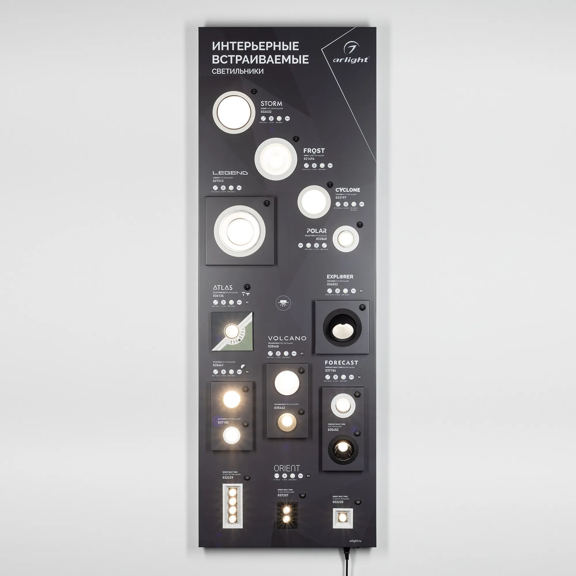 Стенд Cветильники Даунлайты встраиваемые ARLIGHT-1760x600mm (DB 3мм, пленка, подсветка) (Arlight, -)