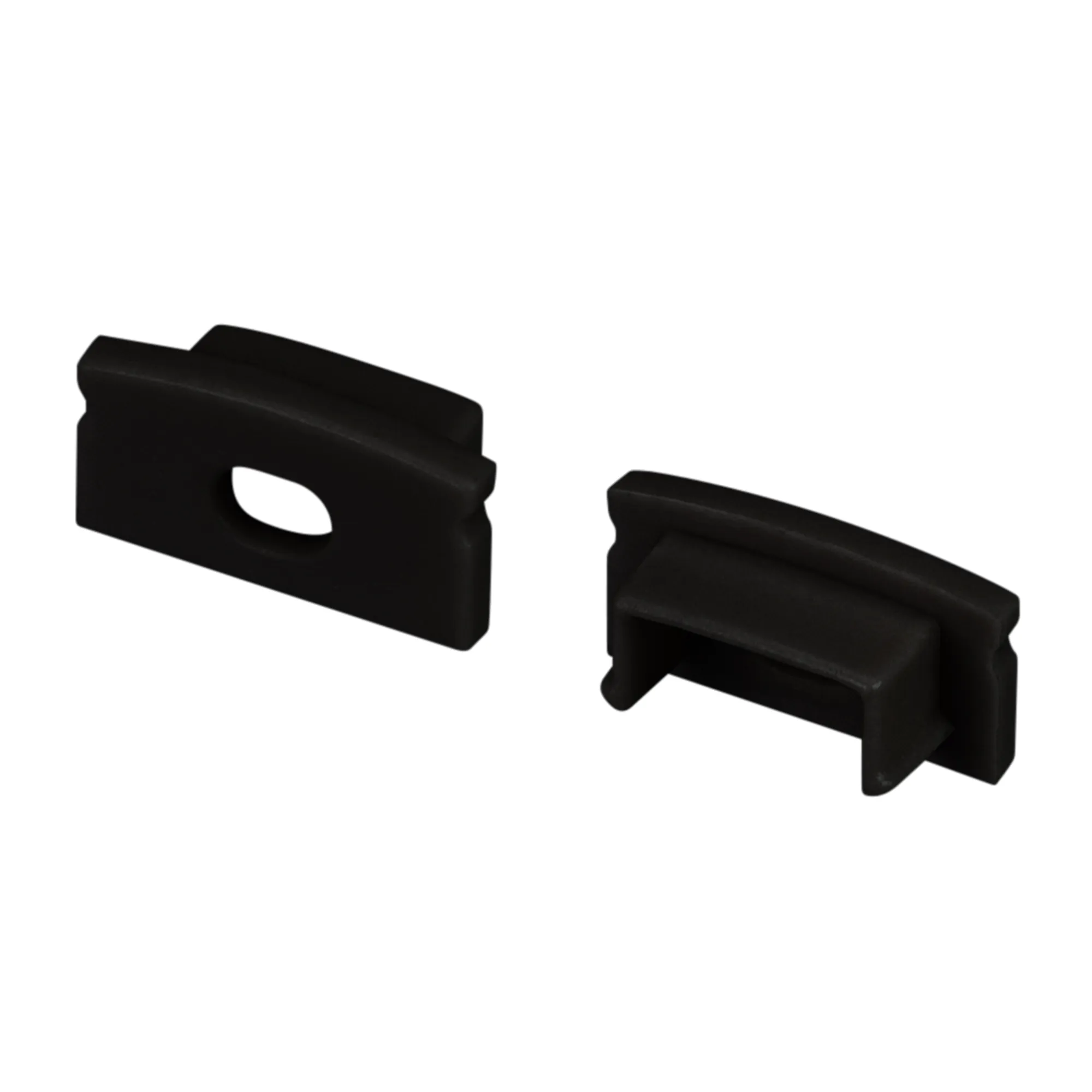 Пара заглушек для профиля LINE-1708. Цвет - черный. Материал - пластик. В комплекте 2 заглушки с отверстием.