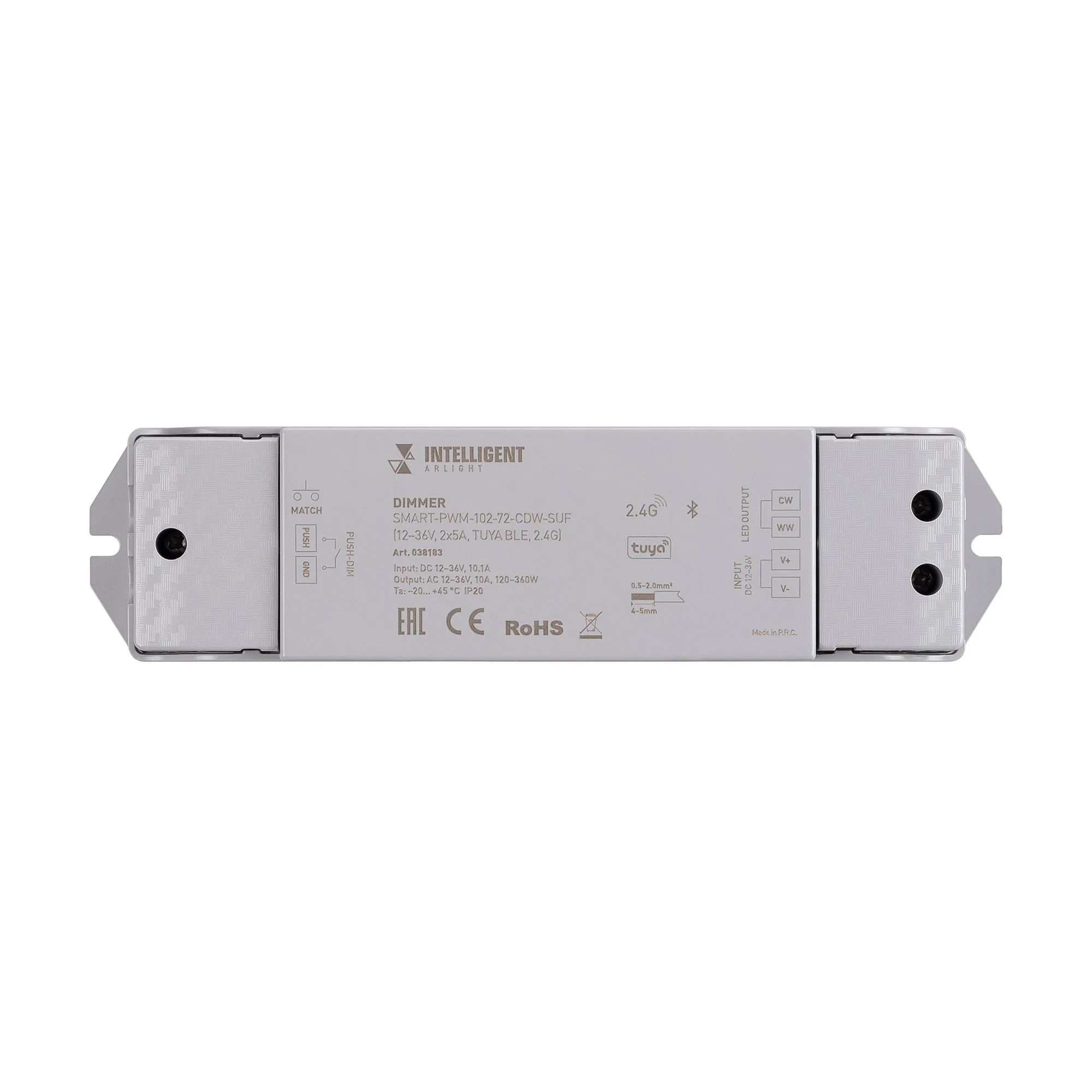 INTELLIGENT ARLIGHT Диммер SMART-PWM-102-72-CDW-SUF (12-36V, 2x5A, TUYA BLE, 2.4G) (IARL, IP20 Пластик, 5 лет)