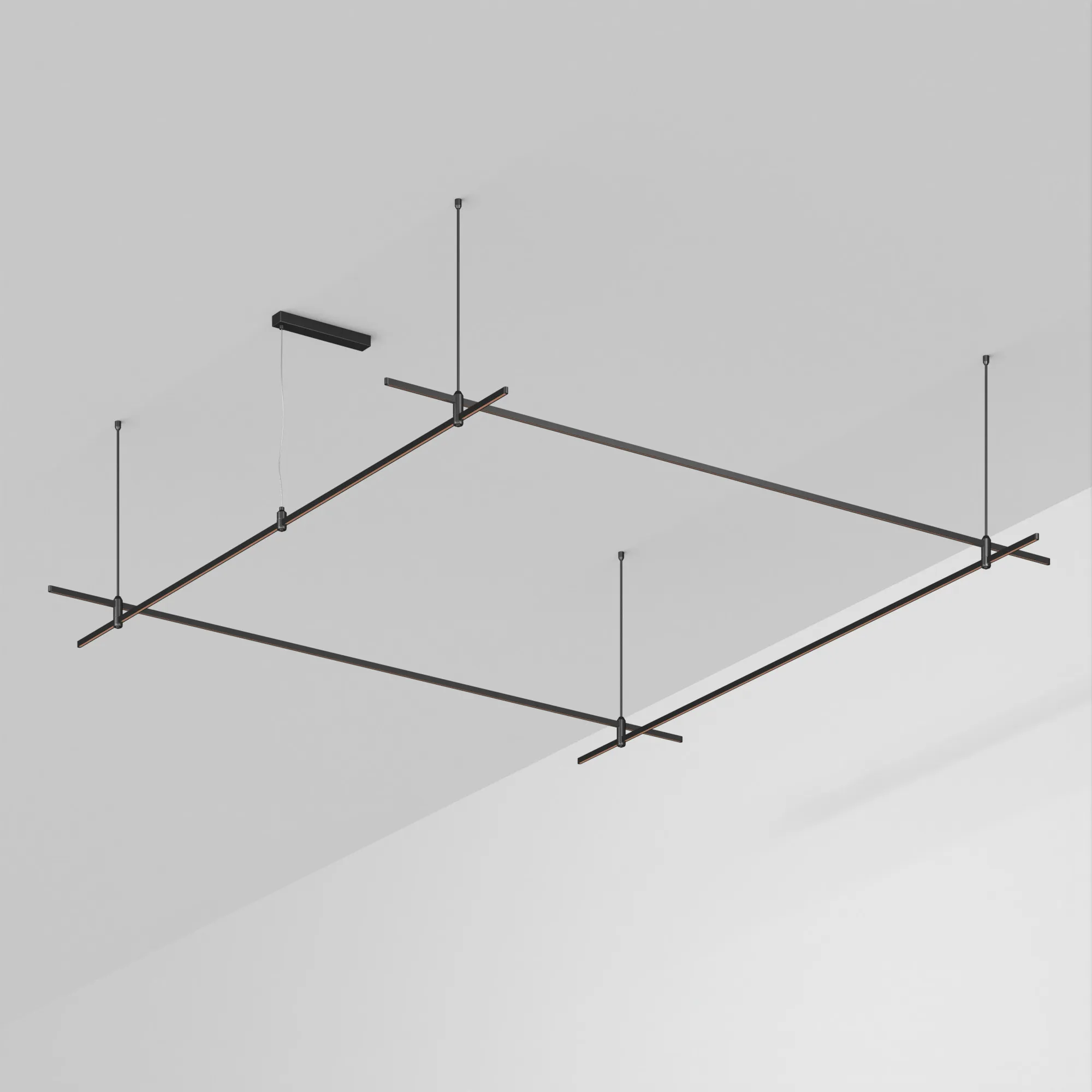 Подвесная конструкция APRIORI, форма квадрат. В комплекте треки с аксессуарами и жесткими подвесами длиной 800мм. DC48V. Материал алюминий, цвет черный. Размер ДxШxВ: 3000x3000x22мм. Светильники и источники питания приобретаются отдельно.
