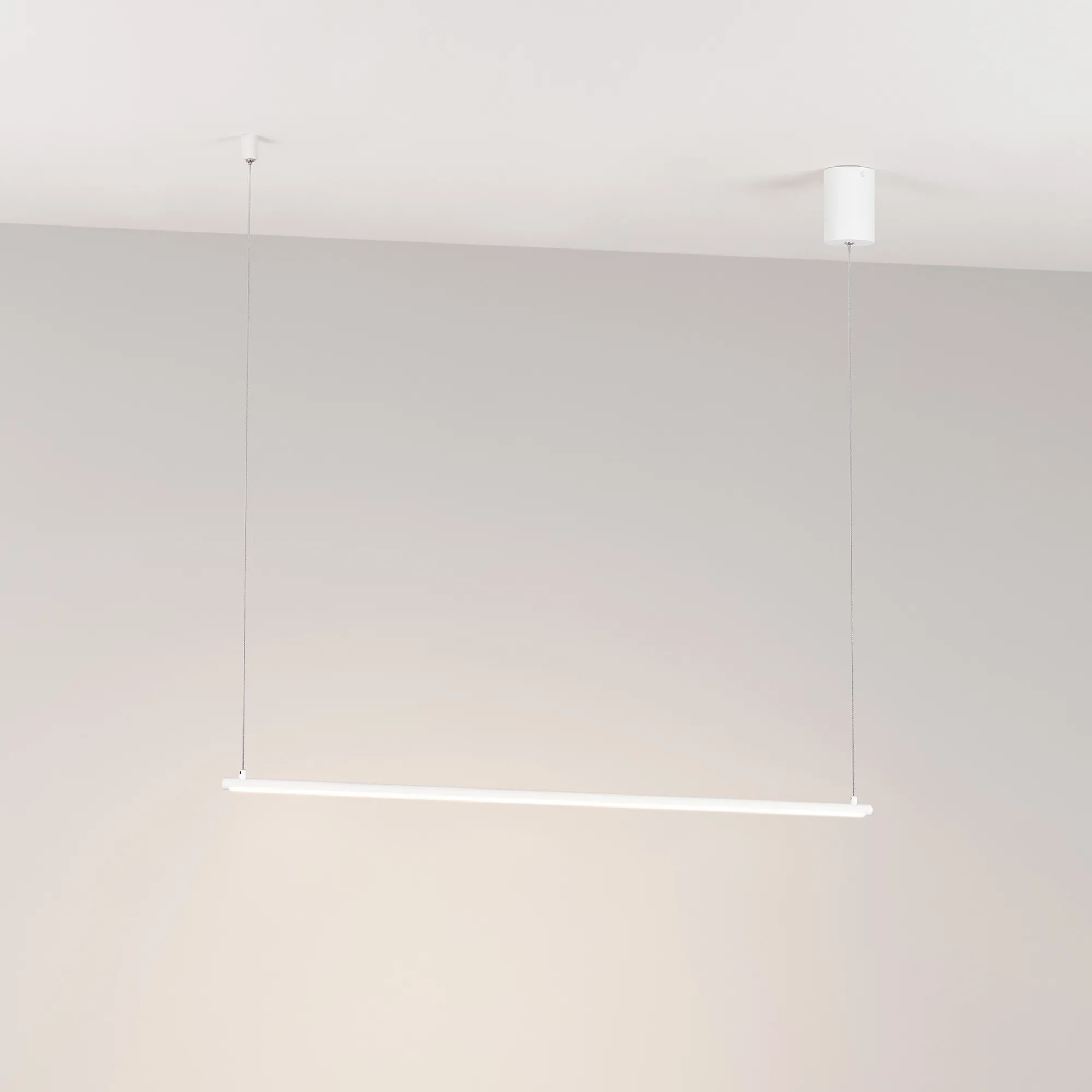 Декоративный подвесной светильник. Мощность 15 Вт, св. поток 675 лм, 45 лм/Вт, дневной 4000 K, CRI>90, угол 120°, напряжение питания 230 В. Белый корпус из алюминия и металла, экран из силикона, степень защиты IP20. Размер: длина 910 мм, диаметр 16 мм, габариты чаши: длина 105 мм, диаметр 70 мм , длина троса 1500 мм. Монтаж подвесной. Драйвер встроенный 22-40 В, 350 мА., пульсация <1%