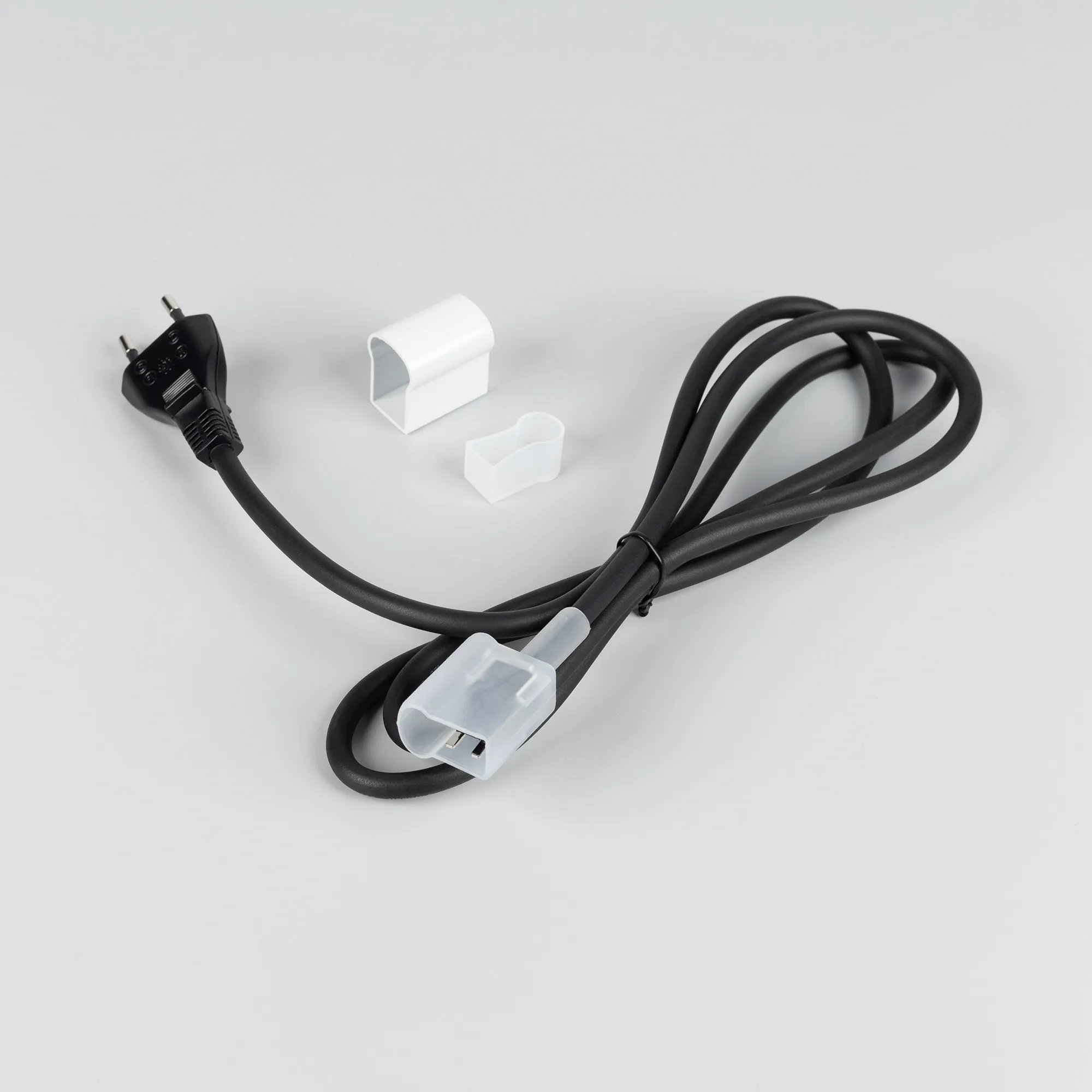 Коннектор питания с сетевой вилкой для подключения гибкого неона сечением 12х24 мм с напряжением питания DC230V (встроенный диодный мост AC-DC 230V). Длина провода 1500 мм, 2 коннектора подключения (одноцветный неон). Укомплектован силовым коннектором и заглушкой. Максимальная длина подключаемого неона не более 50 м.