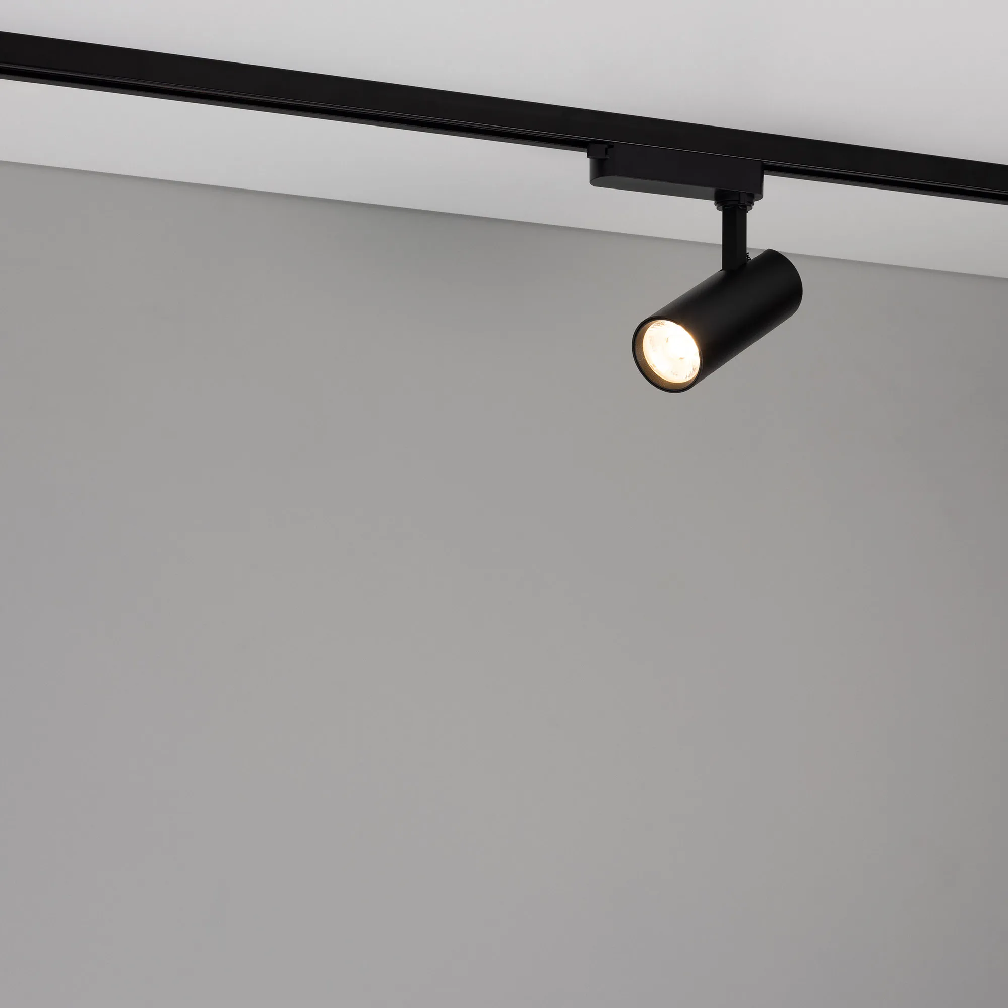 Светильник для треков/шин 2 провода. Мощность 15 Вт, св. поток без решетки honeycomb 1500 лм, 100 лм/Вт, с решеткой honeycomb 990 лм, 66 лм/Вт, тёплый 3000 K, CRI>90, угол 15°, напряжение питания 230 В. Черный круглый корпус из алюминия, материал линзы PMMA, степень защиты IP20. Размер: диаметр 60 мм, длина световой части 141 мм. Монтаж на трек 1-фазный. Драйвер встроенный 350 мА 25-40 В, пульсация <5%.