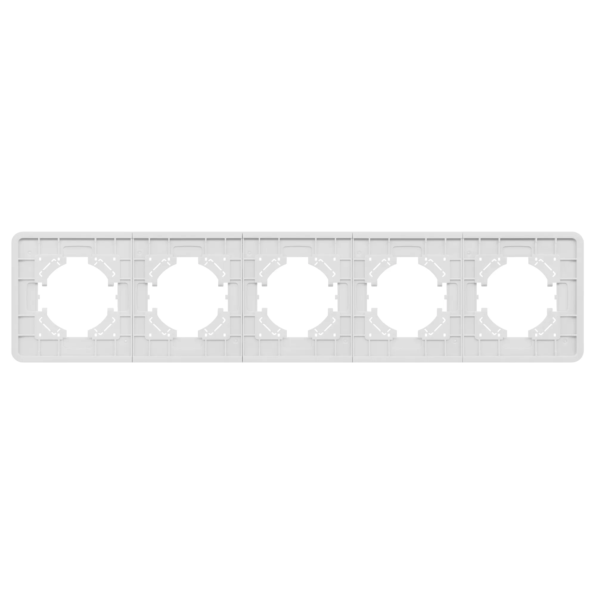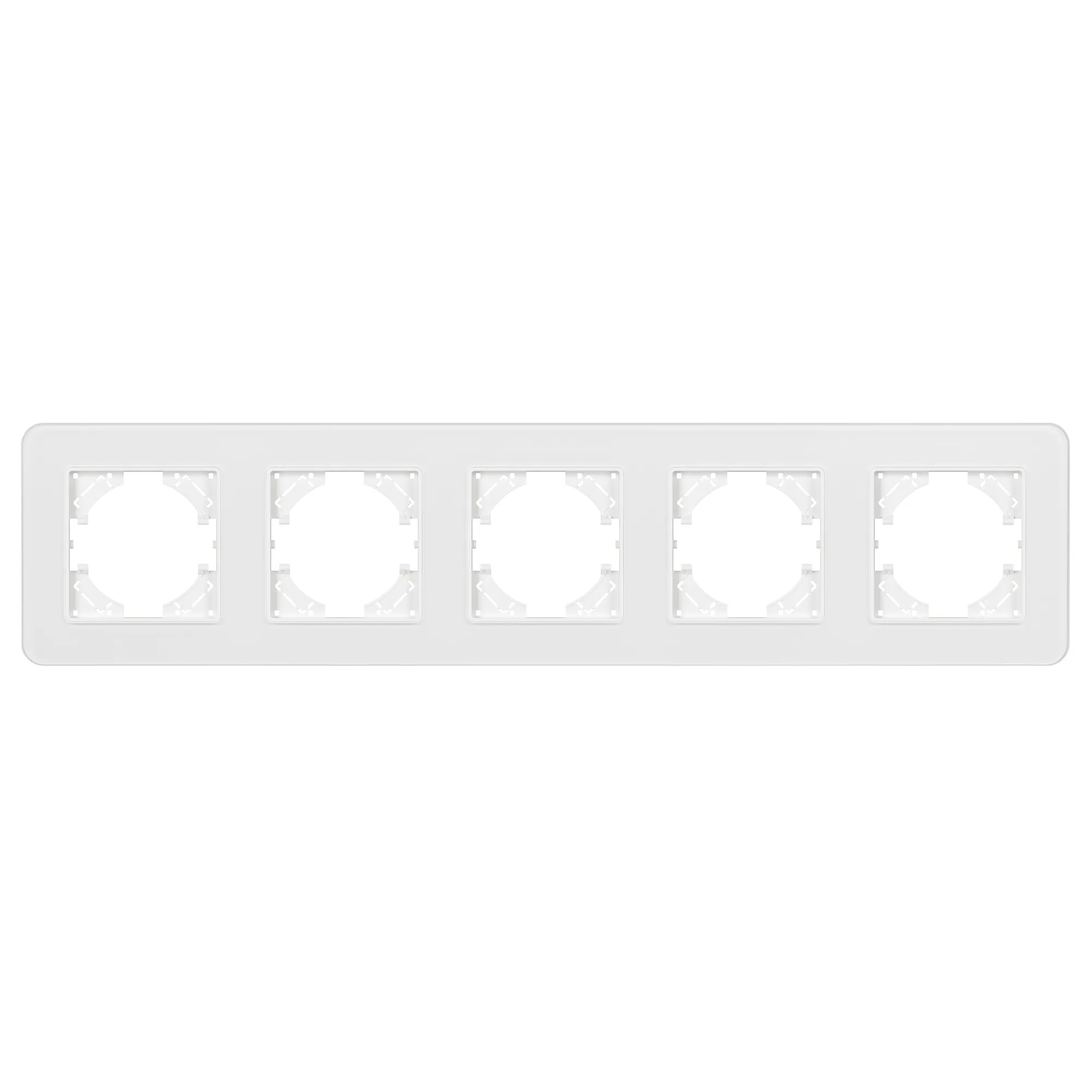 Рамка стеклянная на 5 постов, под встраиваемый механизм. Цвет - белый с Soft-Touch покрытием. Среднего уровня герметичности IP20. Ориентация монтажа - горизонтальная (основным ориентиром служат посадочные выступы для накладки механизма).