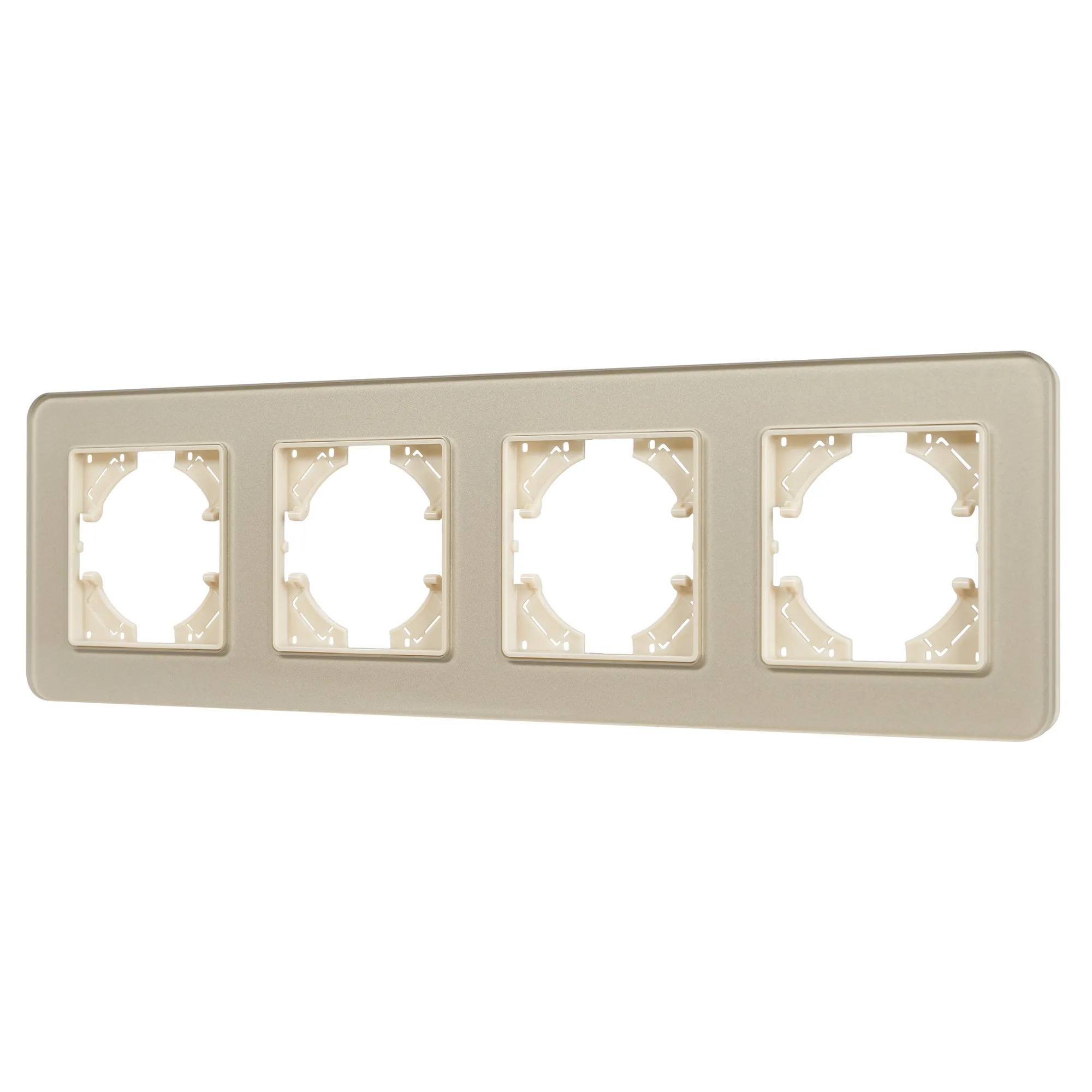 Рамка стеклянная на 4 поста, под встраиваемый механизм. Цвет - золотой. Среднего уровня герметичности IP20. Ориентация монтажа - горизонтальная (основным ориентиром служат посадочные выступы для накладки механизма).