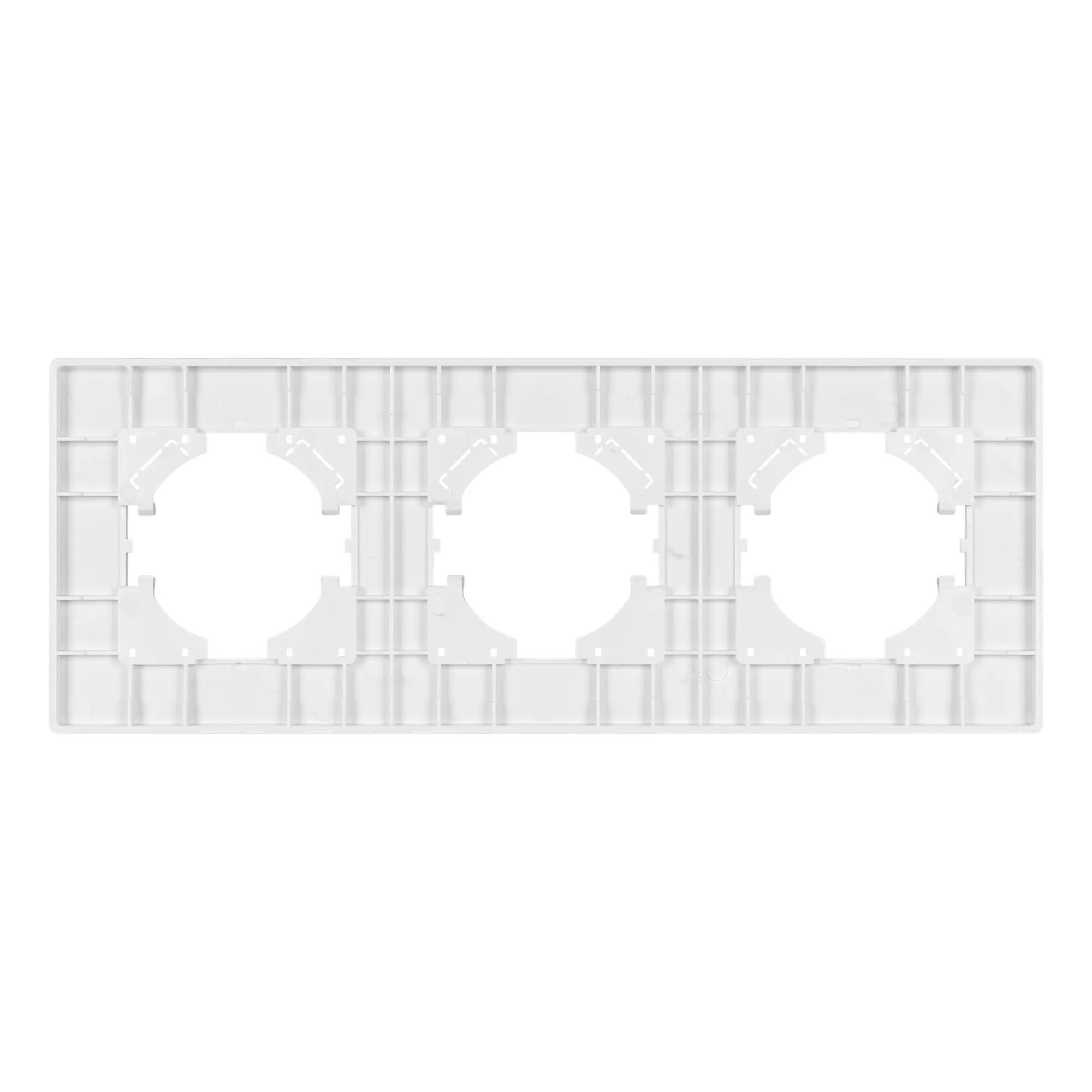 Рамка пластиковая на 3 поста, под встраиваемый механизм. Цвет - серый. Среднего уровня герметичности IP20. Ориентация монтажа - горизонтальная (основным ориентиром служат посадочные выступы для накладки механизма).