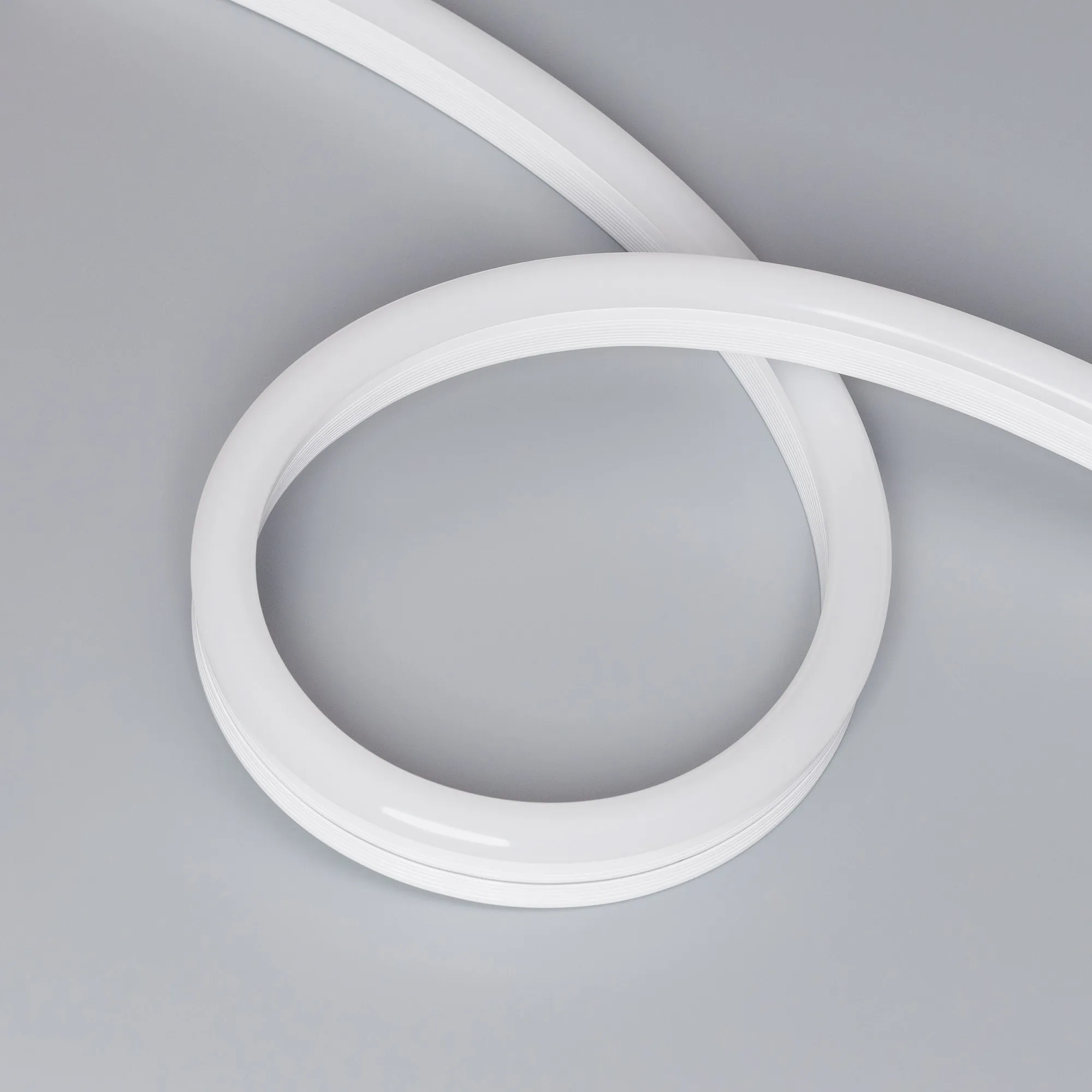 Гибкая герметичная лента (неон серии HALO), сечение 15×25 мм. Светодиоды SMD 2835 160 шт/м. Цвет свечения ТЕПЛЫЙ БЕЛЫЙ (3000 К), индекс цветопередачи CRI>80, световой поток 480 лм/м, угол излучения 197°. Мощность 10 Вт/м, питание 24 В. Класс пылевлагозащиты IP67. Размеры 5000×15×25 мм. Мин. отрезок 50 мм. Горизонтальный изгиб SIDE, минимальный радиус изгиба 125 мм. Вывод кабеля с одной стороны. Катушка 5 м. Цена за 1 м. Гарантия 3 года.