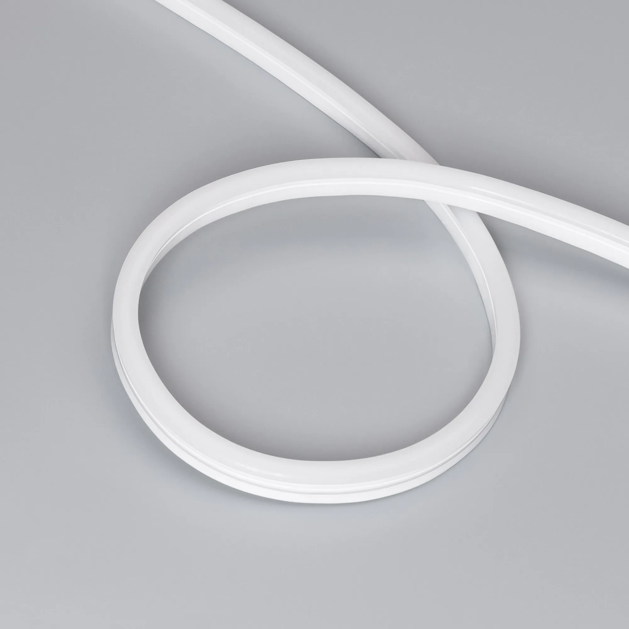 Гибкая герметичная лента (неон серии HALO), сечение 10×17 мм. Светодиоды SMD 2835 160 шт/м. Цвет свечения ХОЛОДНЫЙ БЕЛЫЙ (6000 К), индекс цветопередачи CRI>80, световой поток 500 лм/м, угол излучения 140°. Мощность 10 Вт/м, питание 24 В. Класс пылевлагозащиты IP67. Размеры 5000×10×17 мм. Мин. отрезок 50 мм. Горизонтальный изгиб SIDE, минимальный радиус изгиба 75 мм. Вывод кабеля с одной стороны. Катушка 5 м. Цена за 1 м. Гарантия 3 года.
