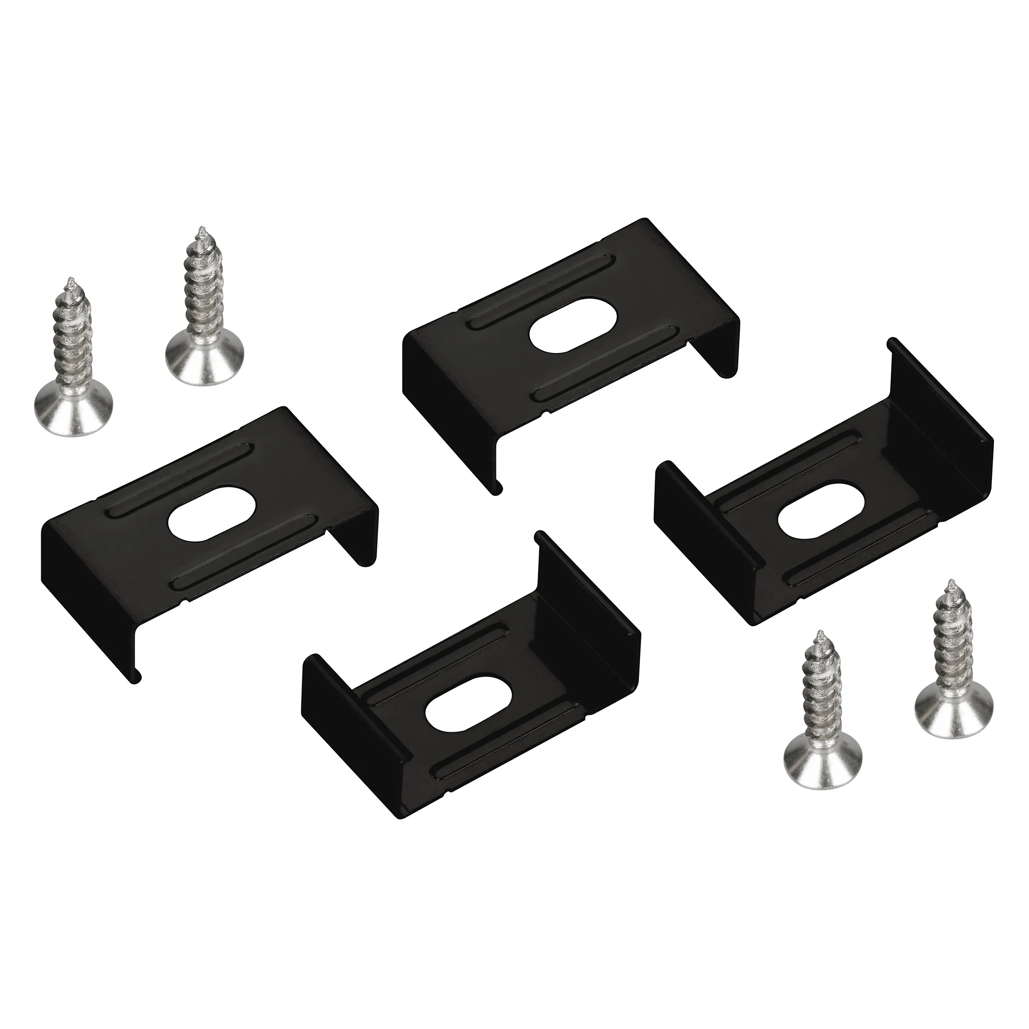 Комплект держателей черного цвета для профиля SL-LINE-2020, SL-LINE-2013. В комплекте 4 держателя, 4 шурупа. Материал - сталь. Цена за комплект.