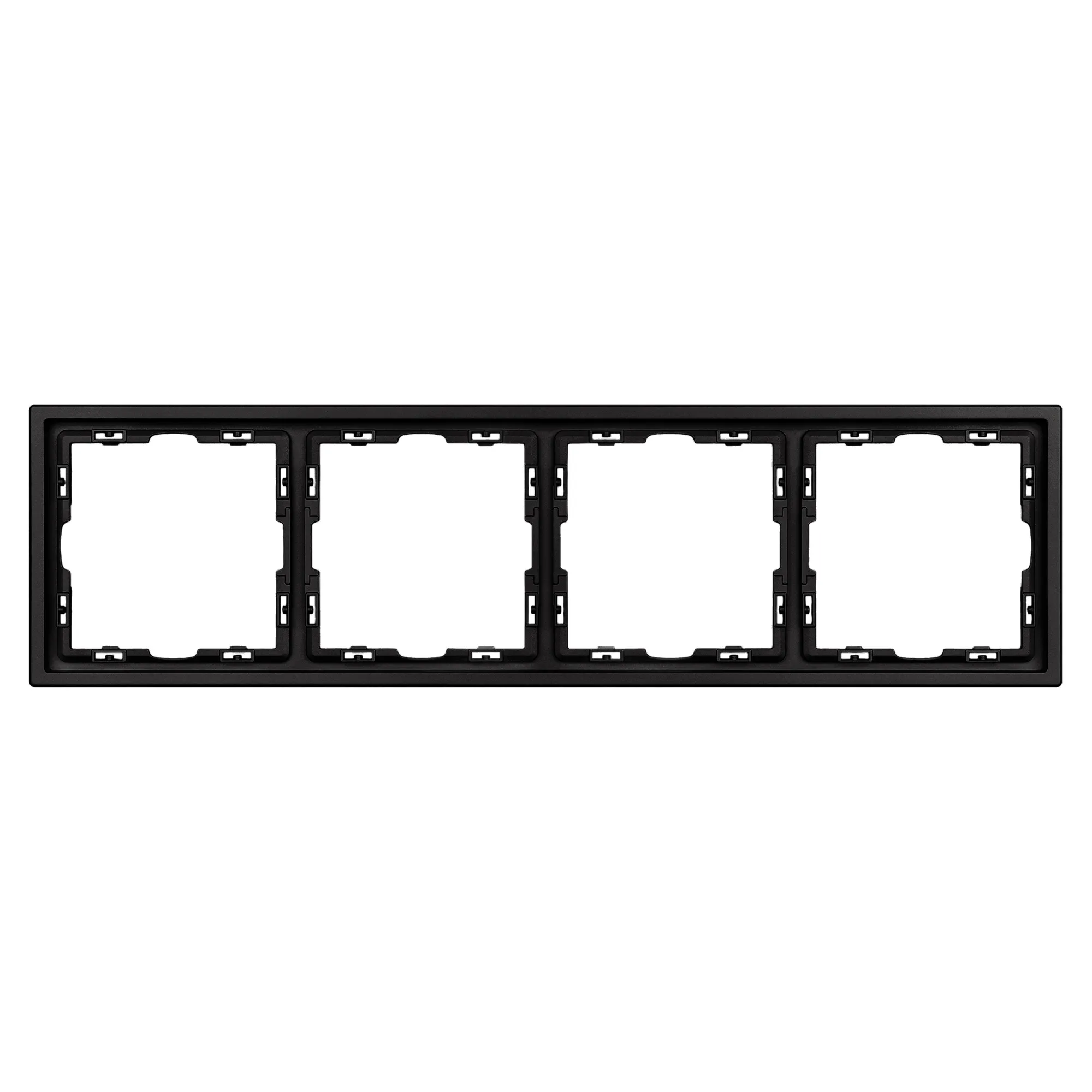 Рамка пластиковая на 4 поста, под встраиваемый механизм. Цвет - черный, с Soft-Touch покрытием. Среднего уровня герметичности IP20. Ориентация монтажа горизонтальная.