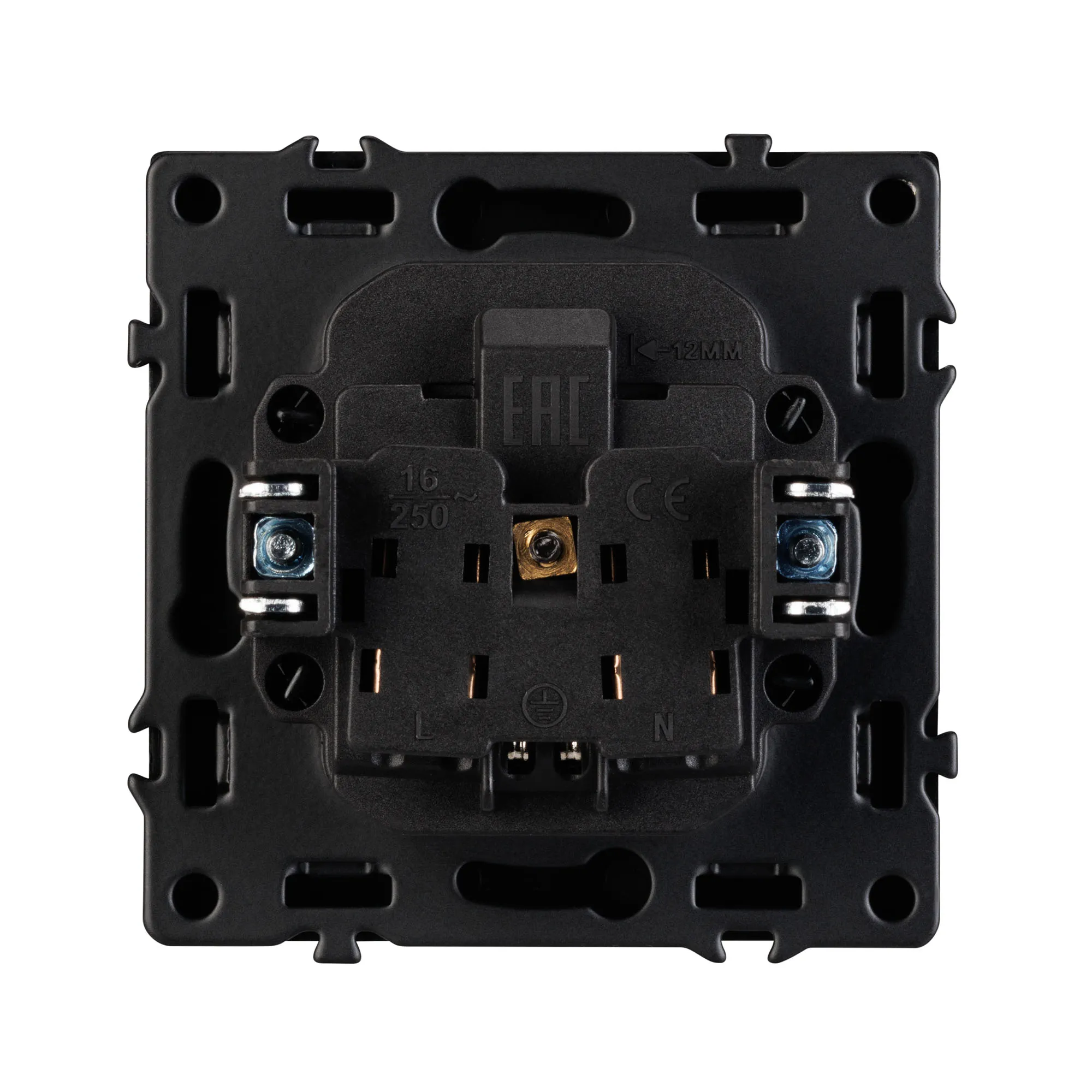 Механизм розетки с заземлением на 1 пост. Цвет - серый, с Soft-Touch покрытием. Без фронтальной рамки. Уровень пылевлагозащиты IP20. Розетка устанавливается в стандартный подрозетник круглого сечения диаметром 60мм.