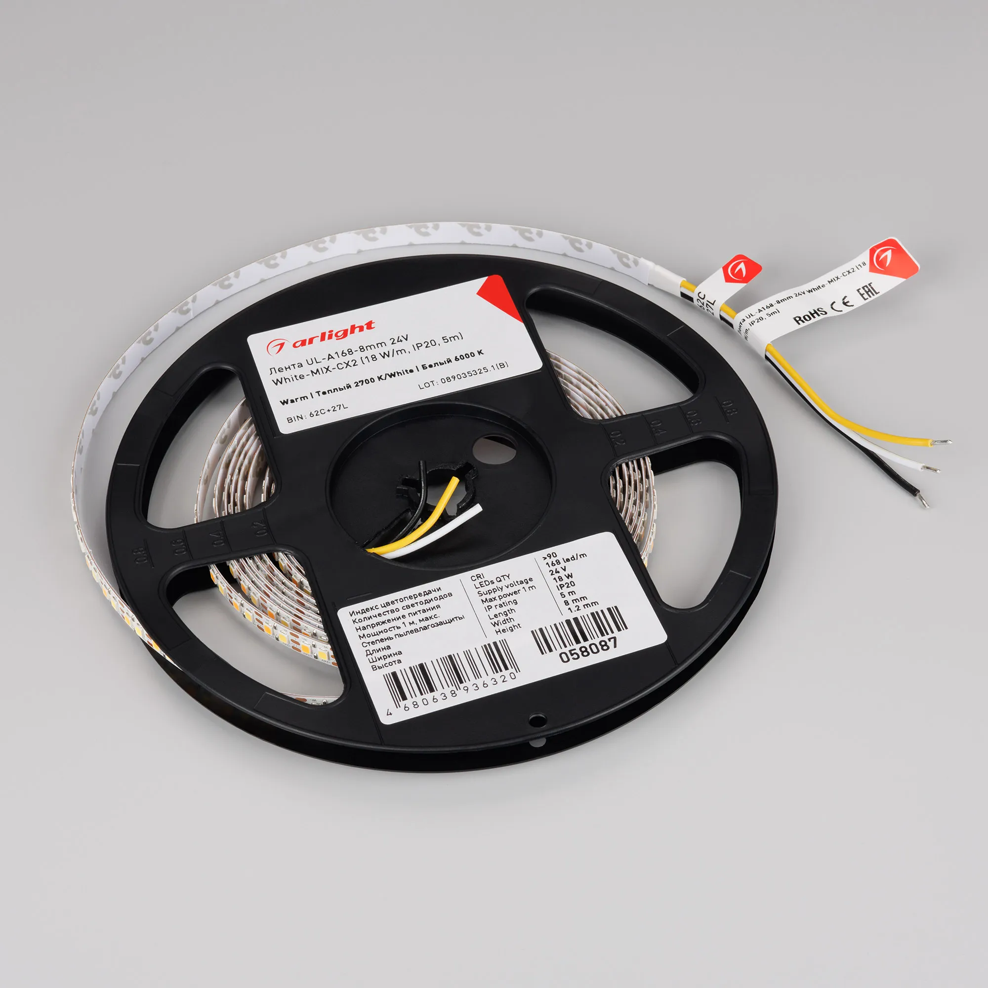 Лента UL-A168-8mm 24V White-MIX-CX2 (18 W/m, IP20, 5m) (Arlight, резка 2 светодиода)