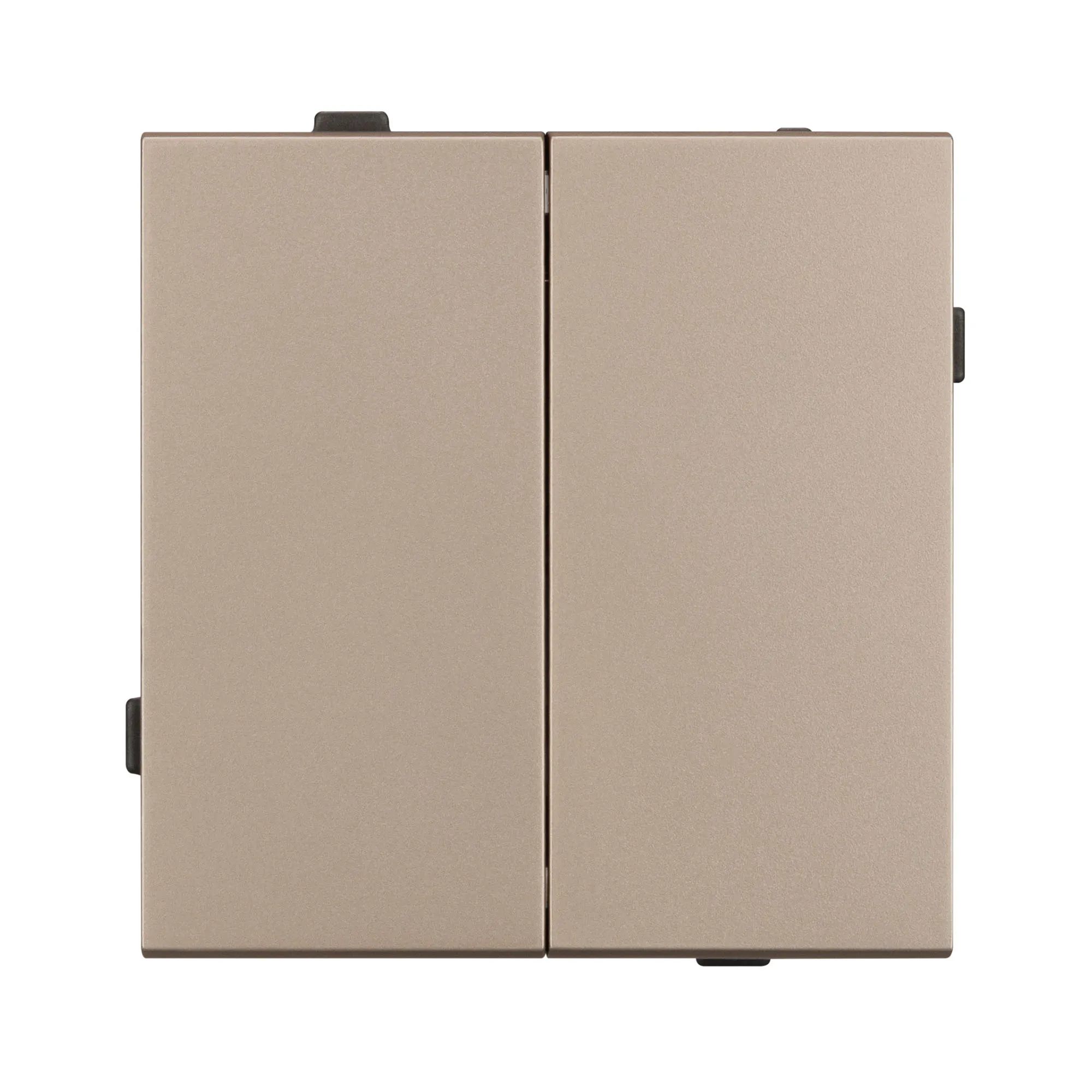 Механизм выключателя света на 1 пост 2 клавиши (непроходной). Цвет - золотой. Без фронтальной рамки. Уровень пылевлагозащиты IP20. Выключатель устанавливается в стандартный круглый подрозетник круглого сечения диаметром 60мм.