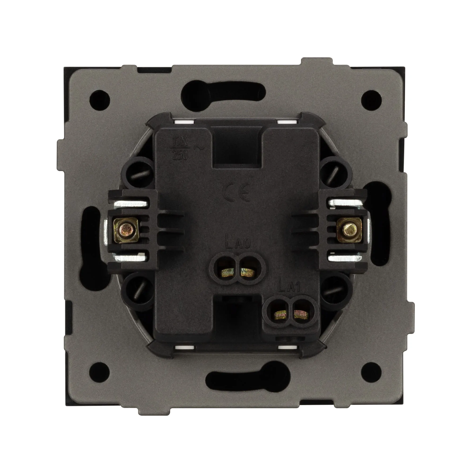 Механизм звонкового выключателя на 1 пост 1 клавиша. Цвет - черный. Без фронтальной рамки. Уровень пылевлагозащиты IP20. Выключатель устанавливается в стандартный подрозетник круглого сечения диаметром 60мм.
