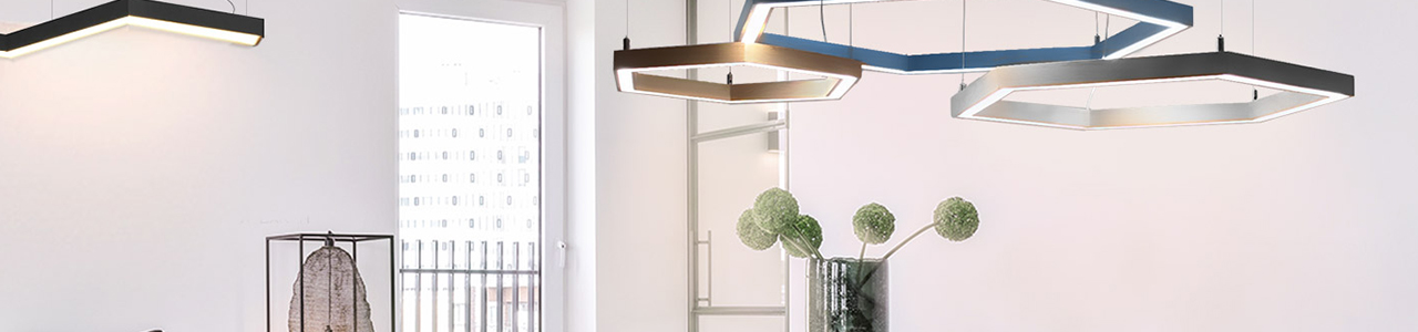 Разнообразные варианты формы светильника, чаще всего это- L-образные, T-образные, Y-образные, Z-образные, H-образные, треугольные, четырехугольные, шестиугольные профильные светильники. В некоторых случаях возможно модульное исполнение этих фигур для дальнейшего соединения между собой и создания комплекса фигур, например «соты» из Y-образных светильников.