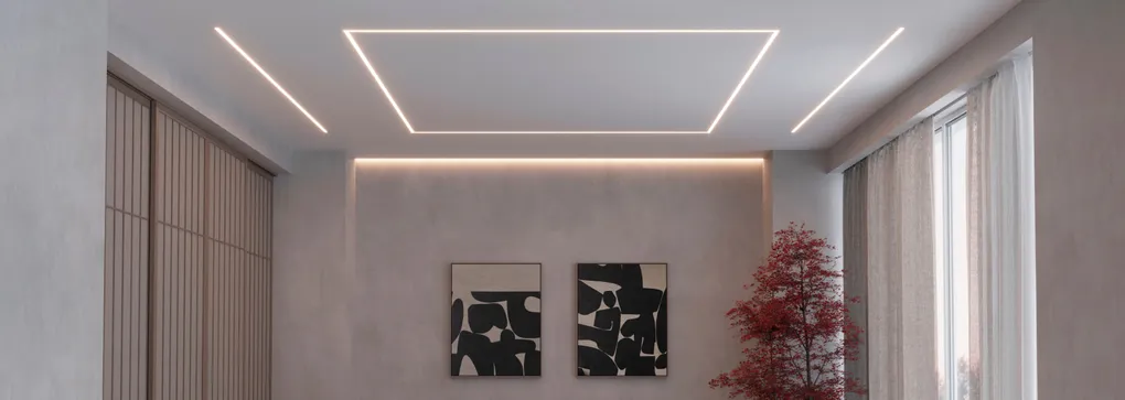С профилями STRETCH 20 вы можете не только создать аккуратный и эстетичный потолок, но и достаточное освещение. В зависимости от используемого источника света профили подойдут как для основного освещения, так и для декоративной контурной подсветки.