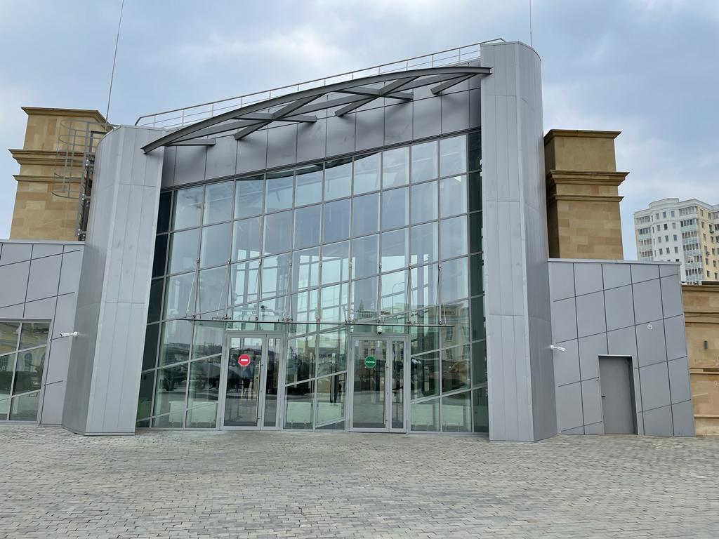 Важную роль в оформлении комплекса играют световые элементы. Светодиодные RGBW-прожекторы были установлены внутри стеклянных конструкций входного павильона музейного комплекса. За счет этого в темное время суток создается динамический эффект заливки помещения светом.