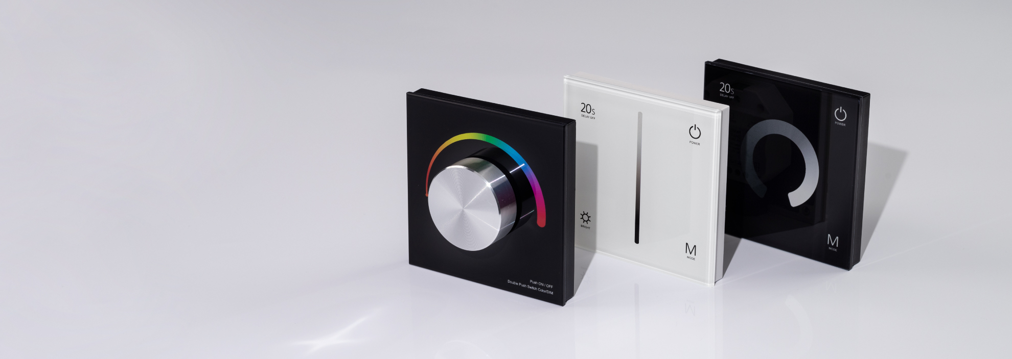 Новинки представлены роторными и сенсорными панелями для управления светодиодными лентами DIM, MIX и RGB.